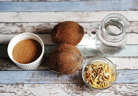 Gather your ingredients. To make this traditional Jamaican treat, you only need a few simple ingredients: 2 brown coconuts 1 cup of fresh ginger, diced 2 cups of golden brown sugar, packed 3 cups of water