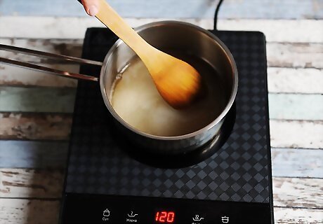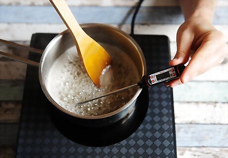 Bring the contents of the saucepan to the boil. Use a candy thermometer to check the temperature of the mixture -- you want it to reach 240 °F (116 °C).