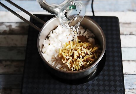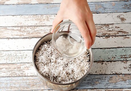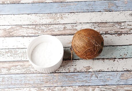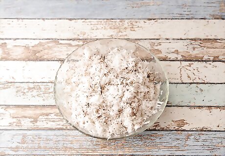 Prepare the coconut. Use a screwdriver to puncture holes in the eyes of the coconut and drain the coconut water, setting it aside for later. Use a hammer to crack open the coconut, then use a butter knife to pry the meat from the shell. Use a fine grater to grate the coconut meat into long, thin strips. Make sure to grate along the meat, rather than across it. Tip: You can make it easier to remove the coconut meat from the shell by baking the drained coconut in a 400 degree F oven for 10 minutes. Allow the coconut to become cool to the touch before cracking with the hammer.