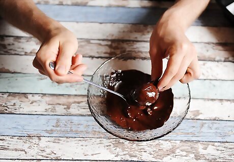 Melt the chocolate chips. While the coconut candies are chilling, place the chocolate chips in a microwaveable bowl and microwave on high power for one minute. Stir the chocolate, then continue to microwave for 10 to 20 second intervals until the chocolate is completely melted.