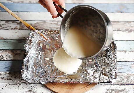 Prepare a 9x13" cake tray. Before you begin, line a 9x13" cake tray with aluminum foil and spray the foil with a non-stick cooking spray. Set it aside while you prepare the candy mixture.