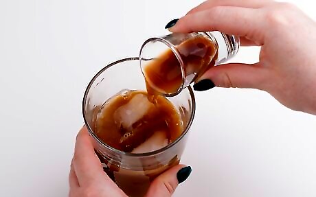 Fill a glass with ice cubes. The amount of ice you use is personal preference. Remember that the more ice you use, the more your coffee soda may get watered down, if you drink it somewhere warm! You can use regular ice cubes or crushed ice in your drink. If you’re worried about ice watering down your drink, consider making coffee ice cubes.