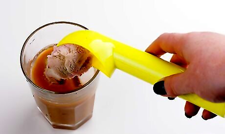Top your drink with a scoop of vanilla ice cream. This is a decadent extra step that is great if you want to serve your coffee soda as a dessert. Use an ice cream scoop to get a rounded ball of ice cream. Gently place it on top of your drink. This will be easiest if you’ve added a fair amount of ice. As the ice cream melts, it will taste like a sweet cream in your coffee.