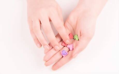Allow the hearts to dissolve for 15 minutes. Assist the process by shaking the containers every now and again.