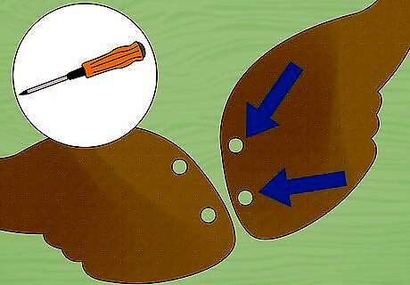 Punch holes in the wings. You can use scissors, a screwdriver, a pen, or another household implement to make the holes. Put one hole on the top portion of the shoulder part of the wing. Place a second hole farther down. Do the same with the other wing.