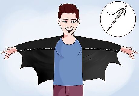 Sew the sleeves. Unfold the fabric. Take the top, uncut fabric and fold it over to create the sleeves. Sew the bottom parts of the sleeves onto the cape. Now the bat wings are ready to wear.