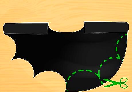 Cut half-circles on the bottom of the fabric. Opposite from where you cut the first semicircle, begin cutting. Start at the corner below where you cut the first semicircle. Leave this corner intact but cut up and down next to it to create another semicircle. Keep going along the bottom side of the fabric, cutting further in to give the wings a slope.