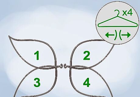 Shape hangers. Take four metal clothes hangers and stretch and bend them to make the outlines of wings. The top two wing sections will be thinner and bigger on top while the bottom two will be shorter but wider. Posterboard is a good substitute material and can be cut into wing shapes, covered with felt, and decorated later.