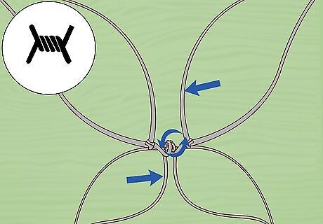 Join the hanger hooks. Place the wings on a table, facing the hooks towards one another. These ends can be cut off so you can twist the resulting four ends together, but you can combine the hooks together by using a little strength to twist them around each other. Make sure the twists are secure with no sharp ends sticking out.