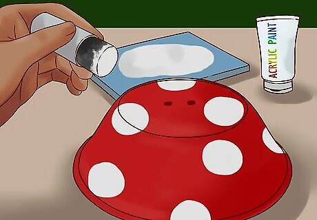 Add white spots to the mushroom cap using acrylic paint. You can paint the spots on using a paintbrush or a round, foam pouncer. You may need 2 to 3 coats of paint for this. If this is the case, allow each coat to dry first.