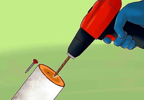 Drill the holes in the log. Make sure that the holes are wide and deep enough for your screws to fit into. When you are done, gently blow away any sawdust.