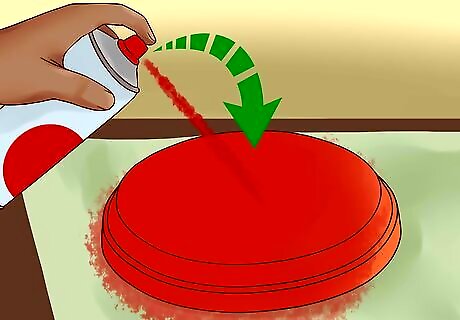 Apply two coats of outdoor spray paint, letting each coat dry in between. Red is the most popular and recognizable color, but you can use another color for your mushroom if you prefer. You only need to paint the outside of the bowl, since you won't see the inside when you are done. Don't forget to paint the tops of the screws as well.