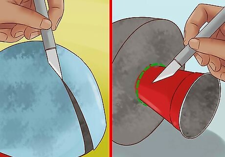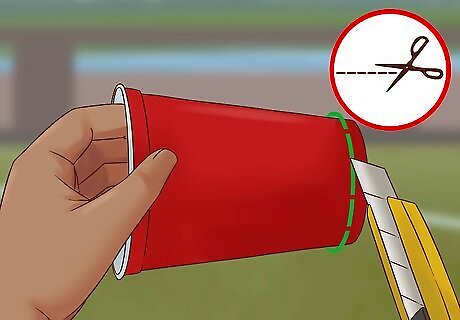 Cut the bottom out of a plastic cup. This will eventually make the stem, so make sure that the shape and size suits the cap. If the cup is too small for the bowl, try a different container, such as a tall yogurt container. The cups that you get iced coffee in are great for this!