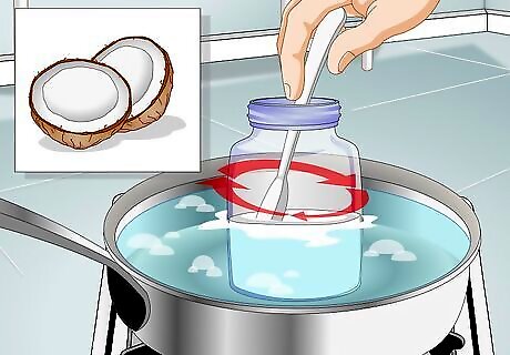 Melt 1 cup (225 grams) of coconut oil in a hot water bath. The coconut oil will act as a base for your toothpaste. It is also naturally antibacterial, so it can help fight against cavities and bad breath. To melt the coconut oil: Put the coconut oil into a jar, then place the jar into a saucepan. Fill the saucepan with enough water so that the water is level with the oil. Set the heat to medium, and stir the coconut oil until it melts. Take the jar out of the saucepan once the coconut oil has melted.