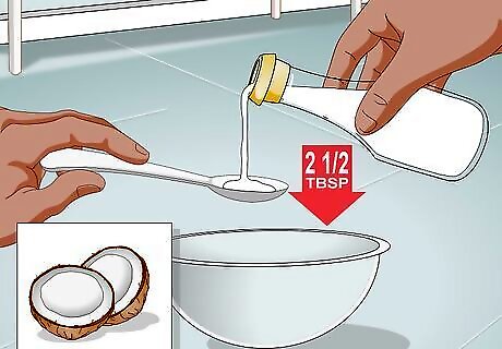 Place 2½ tablespoons of coconut oil into a small bowl. The coconut oil will serve as the base for your toothpaste. It is also natural antibacterial, and it may help ward off cavities and bad breath.