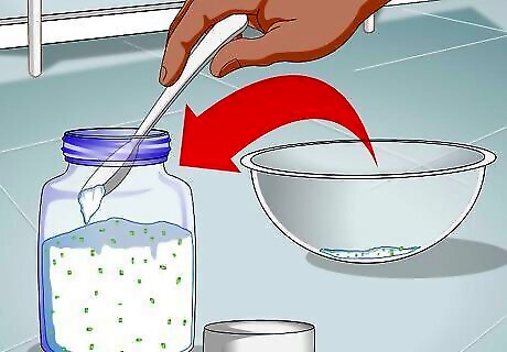Store the toothpaste in a cool, dry place. Avoid keeping it in the refrigerator, or it might harden too much. If the toothpaste does become too hard, you can soften it up a little by placing the jar into a bowl filled with hot water for a few minutes.