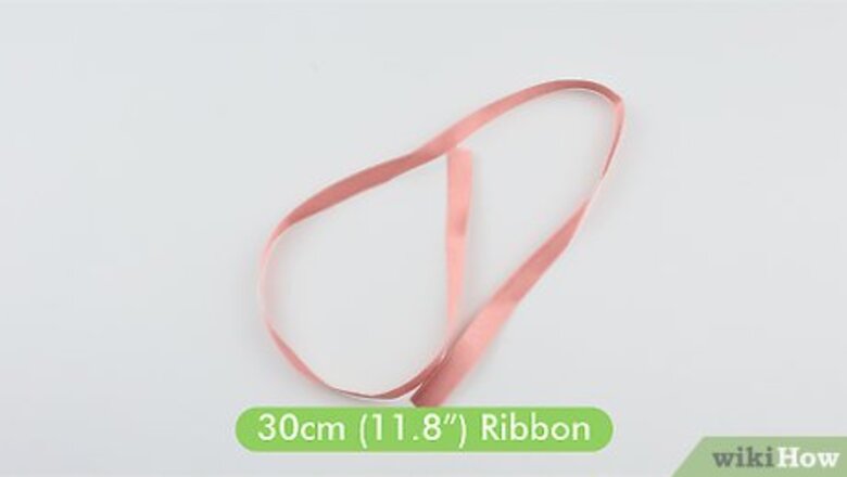 Hold the center of the ribbon. Then, fold the ribbon to form a V-shape. This will create a vertical angle. The tip of the V-shape should be pointing away from you.