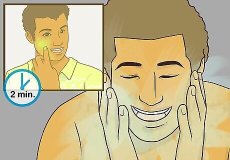 Wash your face. Gently massage the cleanser into you skin for 1 to 2 minutes. Don't forget about your neck! Rinse the cleanser off when you are done, then gently pat your face dry with a soft, clean towel. Store any leftover cleanser in a sealed jar in the fridge.