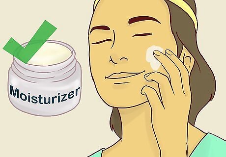 Apply some moisturizer. You can apply your own moisturizer, or your can make you own by mixing together 1 tablespoon (15 milliliters) aloe vera gel, 1 tablespoon (15 milliliters) rose water, and ½ tablespoon (7.5 milliliters) glycerin. If you have dry skin, add ½ tablespoon olive oil. If you have oily skin or acne, add ½ tablespoon lemon juice. Stir everything together. Rose water is a natural antiseptic while glycerin is great for moisturizing your skin without making it oily.