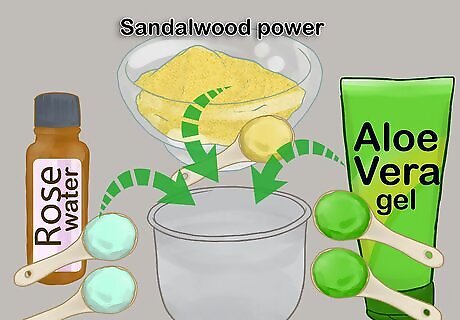 Prepare a finishing mask. Mix together 2 teaspoons aloe vera gel, 2 teaspoons rose water, and 1 teaspoon of sandalwood powder or fullers earth. Pure sandalwood powder is great for treating acne and clarifying skin. Fullers earth is great for absorbing excess oils, making it ideal for those with oily skin. You can also use a different aloe vera-based mask recipe if you have one that you prefer.