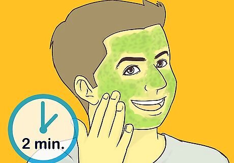 Massage the scrub onto your face for 1 to 2 minutes. Dampen your face first with water. Massage the scrub onto your face using gentle, circular motions. Keep massaging for 1 to 2 minutes. Take care to avoid the sensitive skin around the eyes.