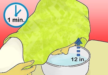 Lean over the bowl for 1 minute. Keep your face 12 inches (30.48 centimeters) above the water, and drape a towel over your head so that it traps the steam. During this time, the steam will help open up your pores and loosen dirt, making it easier to clean. You can steam for your longer, for up to 3 minutes, but remember to take a break and breath deeply after each minute. Splash your face afterwards with cool water. This will help tighten and seal your pores, and prepare your skin for the next step.