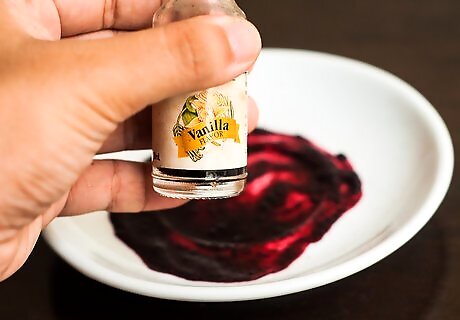 Mask unwanted flavors when necessary. Depending on the kind of food you are coloring, you can get rid of flavor contamination from your food dye by adding additional flavors. For instance, a hint of flavor from beet juice coloring in cake icing can be easily covered up with a drop or two of vanilla or peppermint extract. This method doesn't work quite as well for savory foods colored with sweet dyes. If you color cauliflower red using raspberry puree, for example, even lots of salt and butter might not be able to mask the sweetness of the dye. Many extracts and other substances that can be useful for masking flavors, such as truffle oil, are quite expensive (and potent), so use them sparingly!