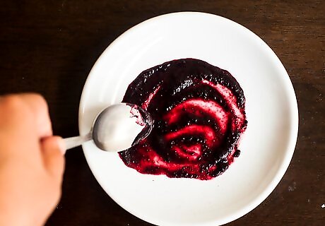 Reduce the juice. In some cases, the strained juice itself will be sufficient as a food dye. However, you can increase the intensity of the color by cooking off some of the water contained in the juice. Pour the juice into a small saucepan and cook it over medium heat until it becomes the consistency of a thick paste. This process results in a highly concentrated dye, which will have dense flavor, especially if it is made from berries. Be sure to use it sparingly to avoid flavor contamination. Skip this if you are going for a lighter, more pastel coloring.