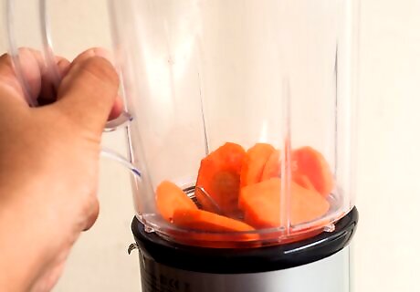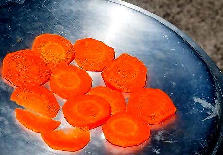 Boil your vegetables. Some vegetables leach color into the water when boiled. The vegetables that work best for this are those with lots of water content (and therefore juices) that are also deeply hued. Red cabbage (for purple) and beets (for red or pink) are two great examples of vegetables that can be boiled to extract their coloring. For a more concentrated color, only use as much water as is needed to barely cover the vegetables. The colored water becomes the dye -- the more you dilute it, the lighter the shade. A good rule of thumb for figuring out which vegetables produce the best colors is that those that stain your fingers when handling them will also easily dye the foods with which they come into contact.