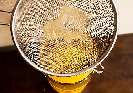 Strain the juice. Any time you blend or juice fruits, tiny seeds, skins, or other fibers (pulp) can end up in the juice. In order to preserve the consistency of the food you wish to dye, remove these elements from the juice by passing it through a mesh sieve (with very small holes) or a cheesecloth. Straining is essential for maintaining consistency and smoothness in your dyes. However, if you are going for a less even look, you can choose not to strain the fruit juice (so long as there are no seeds in it!). Very finely-blended berries will be impossible to strain completely and will most likely end up with tiny flecks of skin and fibers in them; if this is not acceptable, consider juicing or boiling instead. Don't use a sieve or strainer with mesh that is large enough for seeds and fibers to pass through. Test-strain a small portion of your juice to make sure your mesh is effective.