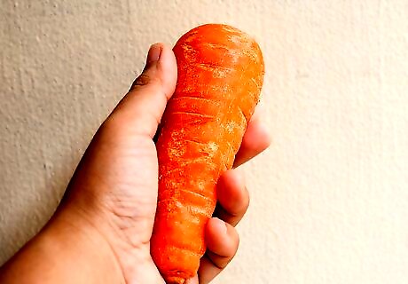 Choose vegetables with consistent coloring. Greens with dark leaves (such as spinach) and many root vegetables (such as carrots and beets) work well as food dyes because they have deep, consistent, opaque coloring. Your natural food dyes will be most effective if you choose veggies that are mostly one color throughout (and which have a color that is bright or deep). Some vegetables may seem like good candidates for natural food dye, but if they have high water content (as does celery) they will actually produce very weak, light shades. Many vegetables (even those with vibrant coloring) lack the thick, concentrated juices produced by many fruits. In general, do not expect vegetable-based food dyes to be as bright or even as those made from berries. Beets (for red) and carrots (for orange) are exceptions to this rule.