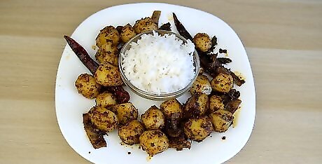 Serve the Chettinbad-style potato fry with rice or soup. The spicy potatoes are a great side to serve with milder foods like steamed rice or chapatis. If you like, set out chutneys or raita to cool down the heat of the dish. Refrigerate leftover potato fry in an airtight container for up to 5 days.