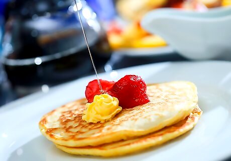 Serve. Butter, syrup, fresh strawberries or blueberries, whipped cream; the sky is the limit!
