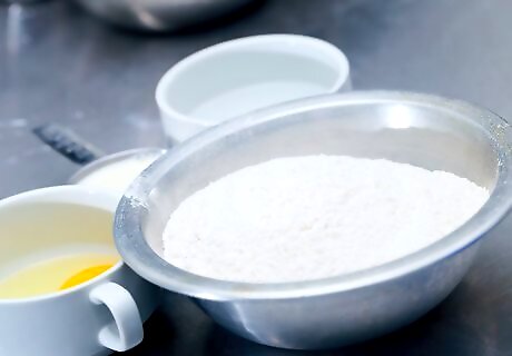 Sift the dry ingredients. Sift the flour and baking powder together in a large bowl. Make sure there are no lumps.