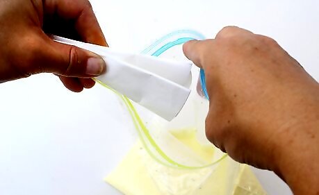 Zip the bag closed and mix the coloring into the cornstarch vinegar. You can do this by jiggling the bag or by massaging it. You should be left with a very thick liquid. There should be no clumps or streaks of color. When closing the bag, try to leave as little air as possible inside it.