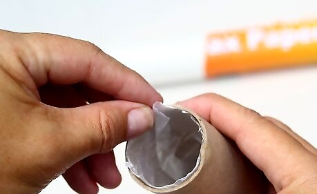 Line the tubes with wax paper. Cut the wax paper into 6 inch by 6 inch (15.25 centimeters by 15.25 centimeters) squares. Roll the wax paper into a tube and slip it inside each toilet paper roll. Gently spread the wax paper out until it is the same size as the toilet paper roll. The top of the wax paper should stick out of the top of the tube. The wax paper will protect the cardboard from the chalk mixture.