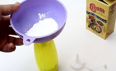 Add ½ cup (65 grams) cornstarch to the mixture. Stir well until all of the powder has dissolved. Make sure that there are no clumps or streaks. The mixture should still be a liquid at this point, but it should be much thicker than standard paint.