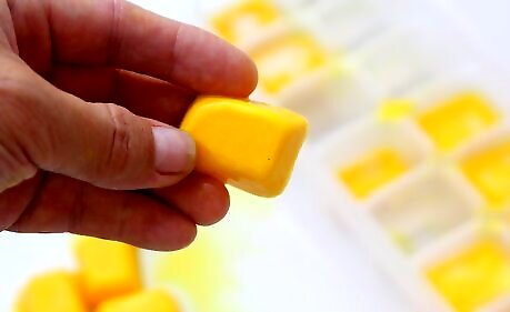 Remove the chalk from the ice cube trays as you would remove ice cubes. Pour them into a bowl. If you made several different colors, you might want to separate the cubes by color. If you used popsicle molds, simply pull the popsicles out.