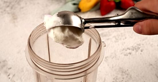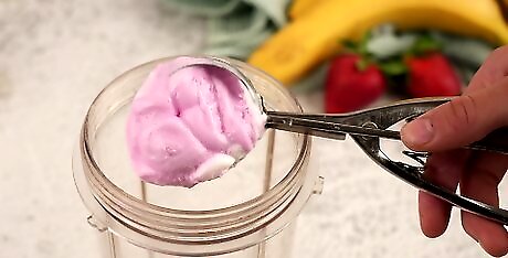 Add 2 cups of vanilla ice cream to your blender. If you like, you can substitute other fruity flavors of ice cream, like, for instance, strawberry, for part or all of your vanilla. More vanilla gives a creamier taste, while more of other types of ice cream can give sweeter, fruitier blends.