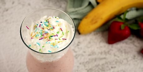 Garnish. Garnish the milkshake with one or two sliced strawberries.