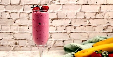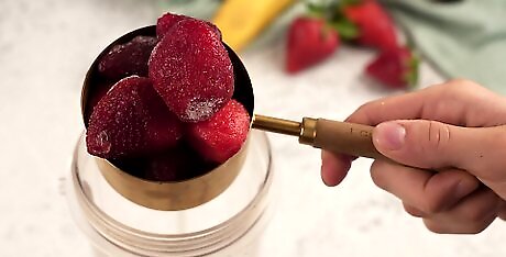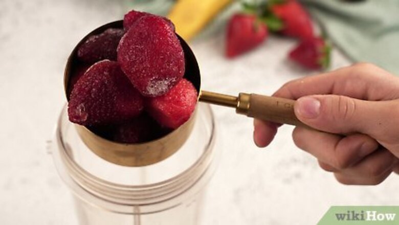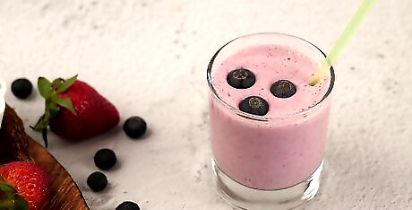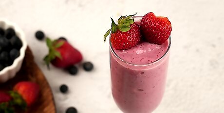 Add your berries. Add 2 cups of strawberries and 2 cups of blueberries to your shake for a delicious blend of flavors. Change the proportions of your berries as you wish.