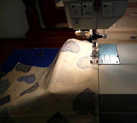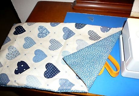 Position the fabric for sewing. Sew the two rectangles with printed or "right" sides facing together, leaving a 3–4 inches (7.6–10.2 cm) open unstitched space for turning.