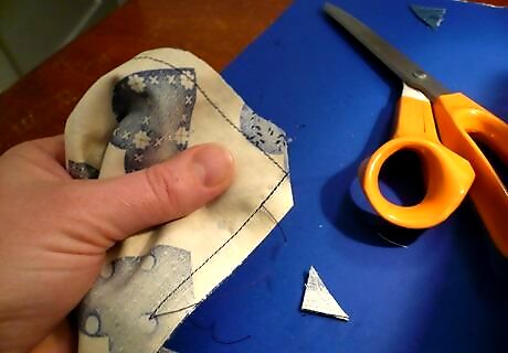 Remove corners for turning. Miter the corners by cutting a wedge off each corner. This helps the placemat lie flat for the next step.