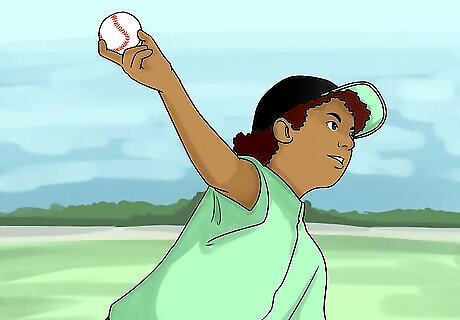 Use cardio to complement sprints and interval training. Baseball is largely an anaerobic activity — that is, it requires short bursts of energy as opposed to aerobic endurance. So, while distance running is good for your health and may help loosen up a stiff arm (and all your other joints), focus primarily on short-burst workouts. Talk to a trainer or coach, or look online for a sensible workout plan that incorporates sprints, interval training, and other exercises that involve bursts of energy.