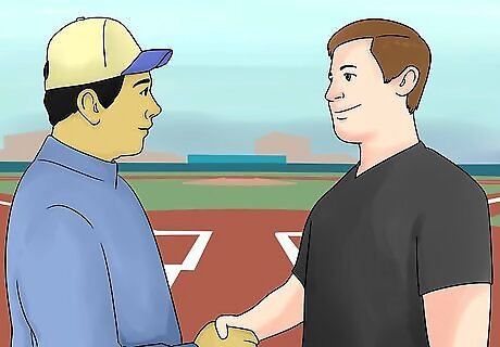 Display humility. There are sure to be some exceptional ballplayers at tryouts, so when you get out there don't be too cocky or overconfident. If it's an open tryout, stretch and run on your own. Find someone else to throw with. Take it seriously and follow the coach's instructions fully. Follow the rules, take instruction willingly, and don’t grumble, complain, or bad-mouth other players.