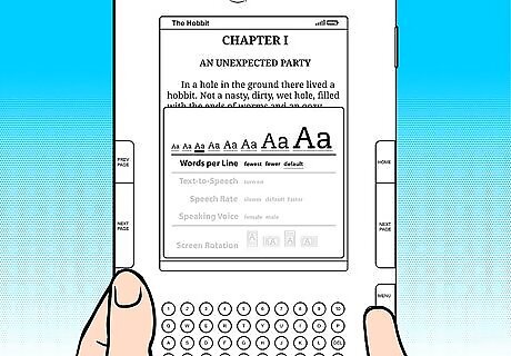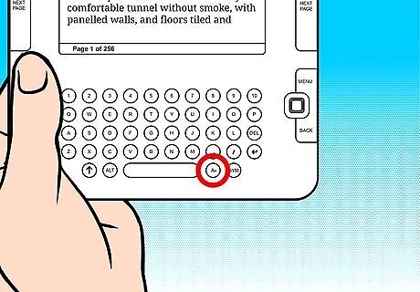 Locate the text-size button on your device. It should look like two capital-letter A's (of increasing size) and should be situated one button to the right of the Kindle's space bar.