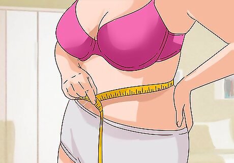 Measure your waist. Wrap a flexible measuring tape around your waist, just above the crest of your hip bones. The measuring tape should feel snug and flat against your skin, but not so tight that it is uncomfortable. You may need a mirror to make sure the measuring tape is level and lies flat against your skin. Measure in the same location every time, and try to use the same measuring tape.