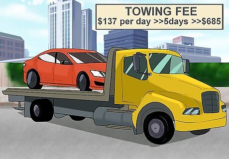 Add up the towing and storage fees. After you are arrested and charged with a DUI, you will not be able to continue driving your vehicle. Therefore, police will have to have it towed and impounded. When police do this, they will send you the bill. In California, for example, the towing and storage fee is around $137 per day, and your car is usually impounded for a minimum of five days. Therefore, the total cost associated with this aspect of a DUI is around $685.