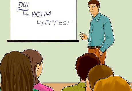 Attend a victim impact panel. As part of your diversion agreement, you will probably have to attend a discussion about how driving under the influence can affect others. Most of the panels will include speakers who are past DUI offenders, often ones who have injured or killed others because of their actions. Each panel member will speak about their experience and how the DUI has affected their lives. After the discussion is over, you will usually be able to ask questions and make comments. In Oregon, you will be required to pay to attend the event. The cost can range anywhere from $5 to $50.