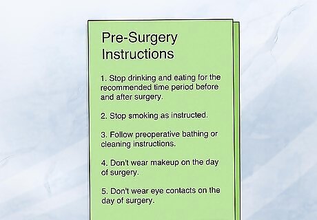 Follow your surgeon's pre-surgery instructions. Stop smoking or cut back before the surgery and try to follow a healthy diet. Your surgeon will tell you how long to fast before the procedure, so follow their instructions to minimize complications. They may instruct you to stop taking some of your medications if they're concerned that these would promote bleeding. Depending on the procedure, you might need to bathe or shave your skin.